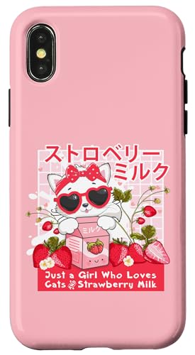 Adorable boîte à Lait Kawaii Chat Fraise Design inspiré de l'anime Coque pour iPhone XS Max