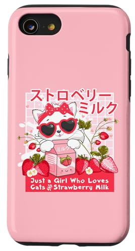 Adorable boîte à Lait Kawaii Chat Fraise Design inspiré de l'anime Coque pour iPhone SE (2020) / 7/8
