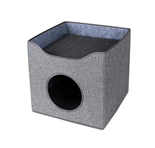 WOUAPY - Boîte à Chat La Terrasse - Espace de Jeu et de Repos en Tissu Chiné - Une Terrasse Permet au Chat d’Observer son Environnement - Entièrement Pliable - Taille Unique