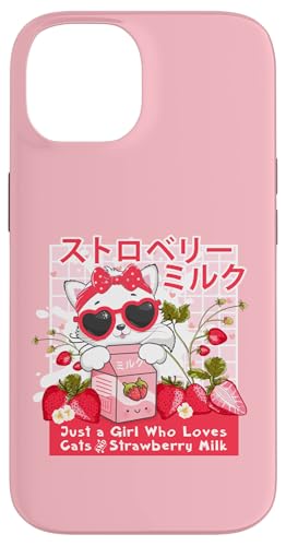 Adorable boîte à Lait Kawaii Chat Fraise Design inspiré de l'anime Coque pour iPhone 14