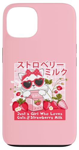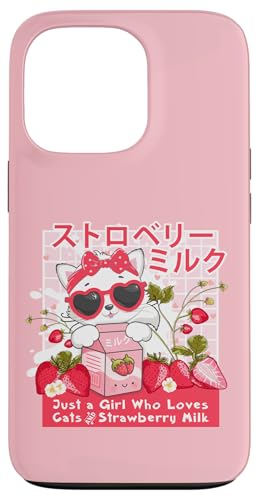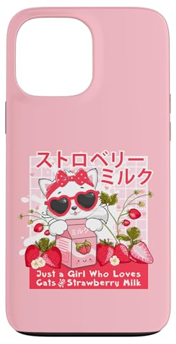 Adorable boîte à Lait Kawaii Chat Fraise Design inspiré de l'anime Coque pour iPhone 13 Pro Max