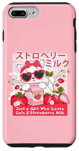 Adorable boîte à Lait Kawaii Chat Fraise Design inspiré de l'anime Coque pour iPhone 7 Plus/8 Plus