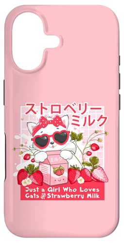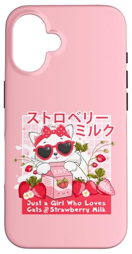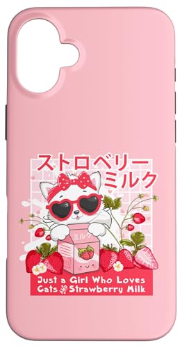 Adorable boîte à Lait Kawaii Chat Fraise Design inspiré de l'anime Coque pour iPhone 16 Plus