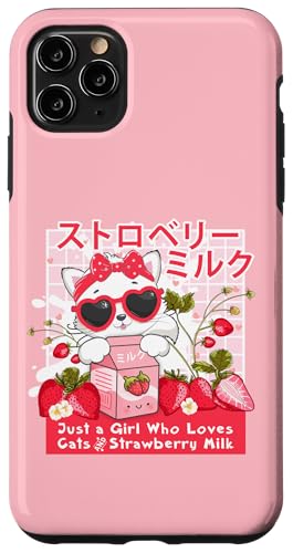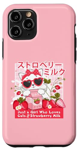 Adorable boîte à Lait Kawaii Chat Fraise Design inspiré de l'anime Coque pour iPhone 11 Pro