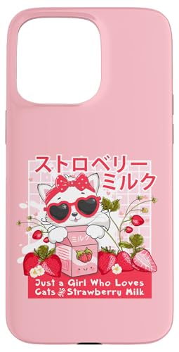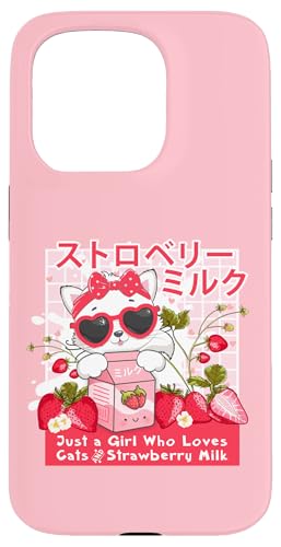 Adorable boîte à Lait Kawaii Chat Fraise Design inspiré de l'anime Coque pour iPhone 15 Pro