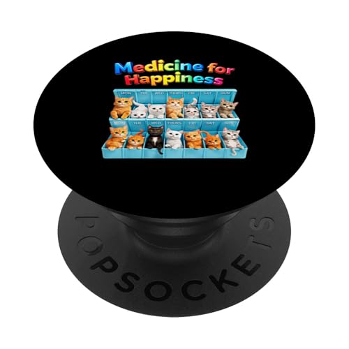 Medicine for Happiness Daily Boîte à pilules pour Chat ou Chaton PopSockets PopGrip Adhésif