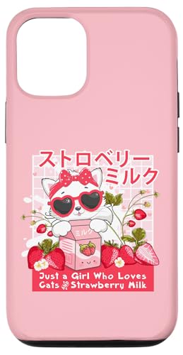 Adorable boîte à Lait Kawaii Chat Fraise Design inspiré de l'anime Coque pour iPhone 13 Pro