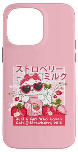 Adorable boîte à Lait Kawaii Chat Fraise Design inspiré de l'anime Coque pour iPhone 14 Pro Max