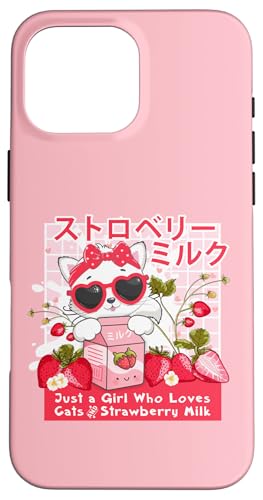 Adorable boîte à Lait Kawaii Chat Fraise Design inspiré de l'anime Coque pour iPhone 16 Pro Max