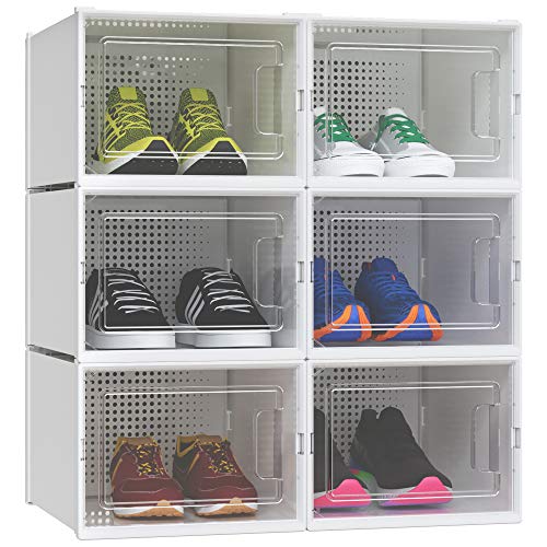BAKAJI Lot de 6 boîtes à chaussures empilables avec couvercles, assemblage facile, porte-chaussures de gain de place transparentes, boîtes de rangement (lot de 6 pièces, 35 x 25 x 19 cm)