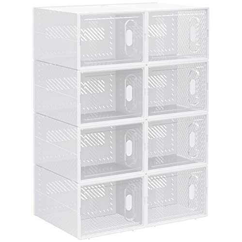 HOMCOM Lot de 8 boites cubes rangement à chaussures modulable avec portes transparentes - dim. 25L x 35l x 19H cm