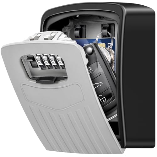 beibijio Boîte à Clé Sécurisée Exterieur, Mise à niveau 2025 4 Code Grande Boîte à Clés Murale Étanche avec Lumière Automatique, Robuste Coffre-Fort à CléS Antirouille pour Maison, Garage, Gris