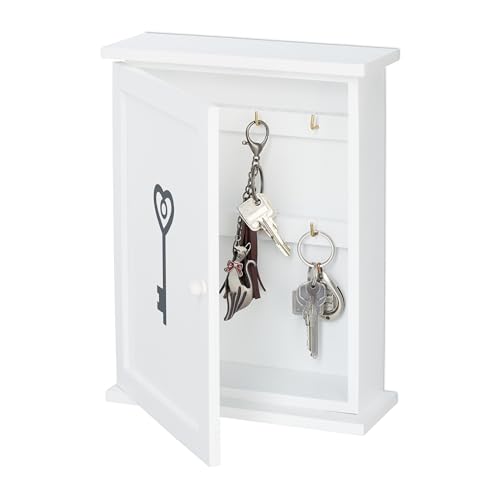 Relaxdays Boîte à clefs en Bois, Motif clé, Style Maison de Campagne, à Suspendre, HxLxP 29 x 22 x 8 cm, Blanc