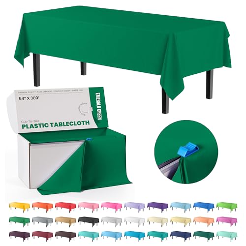 Exquisite Rouleau de Nappe en Plastique Vert émeraude de 137,2 cm x 90,4 m dans Une boîte à découper avec Coupe-glissière Pratique. Permet de Couper jusqu'à 36 nappes rectangulaires jetables en