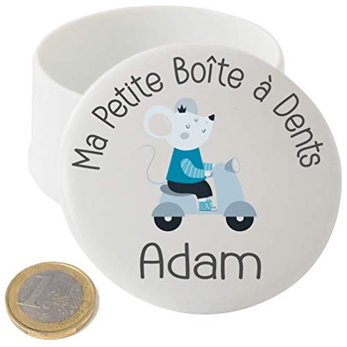 Boite à Dents de Lait en bois - Personnalisée avec le prénom de l'enfant + Texte personnalisable – Dessin de la petite souris - Fabrication française – offrir en cadeau de naissance Garçon