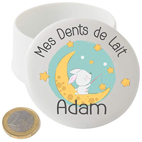 WALLFID Boite à Dents de Lait en bois Personnalisée,Personnalisable avec le Prénom de L'enfant,Ornée d'un Adorable Motif de Souris Dentée,Convient aux Filles et aux Garçons (Canette ronde)
