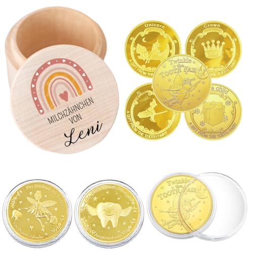 6 Pièces Bois Boîte à Dents et Pièce d'or de la Fée des Dents Kit, Mignonne Bébé Boite à Dents de Lait pour Enfants, Garçons et Filles, Cadeaux D'anniversaire pour Bébés Ayant Perdu Leurs Dents