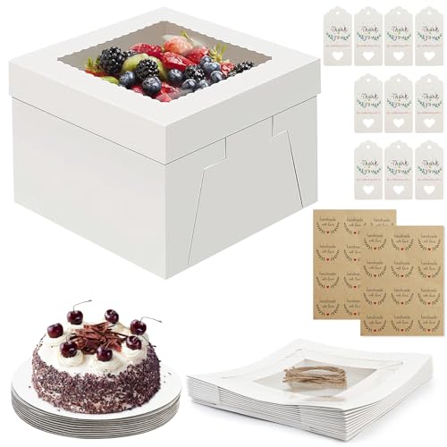 ROTKUSZ 10 Pièces Boîtes à Gâteau avec Planche à Gâteau, Boîte à Gâteau en Carton avec Fenêtre de Visualisation Blanche, Boite Transport Gateau pour Biscuits, Beignets, Desserts