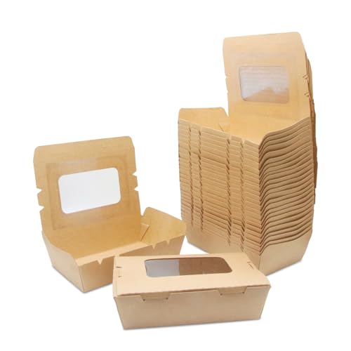 Carton à Salade, Nourriture à Emporter Carton, Boîte D'emballage en Papier Kraft, avec Fenêtre, Preuve D'huile et D'eau, pour Sandwich, Gâteau au Fromage, Hamburger (50 PCS 900ml)