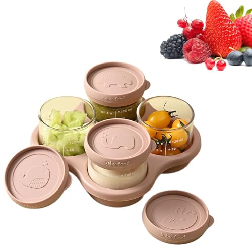 Générique Boîte à Goûter Enfant,4 Pièces en Verre Étanches Graduées,Boîtes Repas Adaptés Au Congélateur - Pour Purée de Fruits Maison Appartement Hôtel Voyage Camping Pique-Nique Extérieur