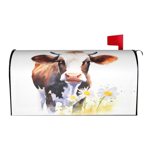 Vache Aquarelle avec Fleur de Marguerite 01 Couvertures de boîte aux Lettres Enveloppes magnétiques Couverture de boîte aux Lettres de Poste Décoration de Jardin pour la Maison