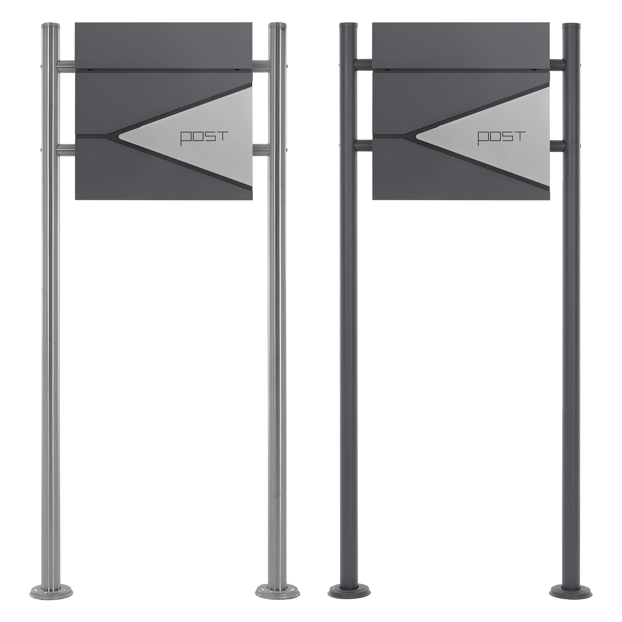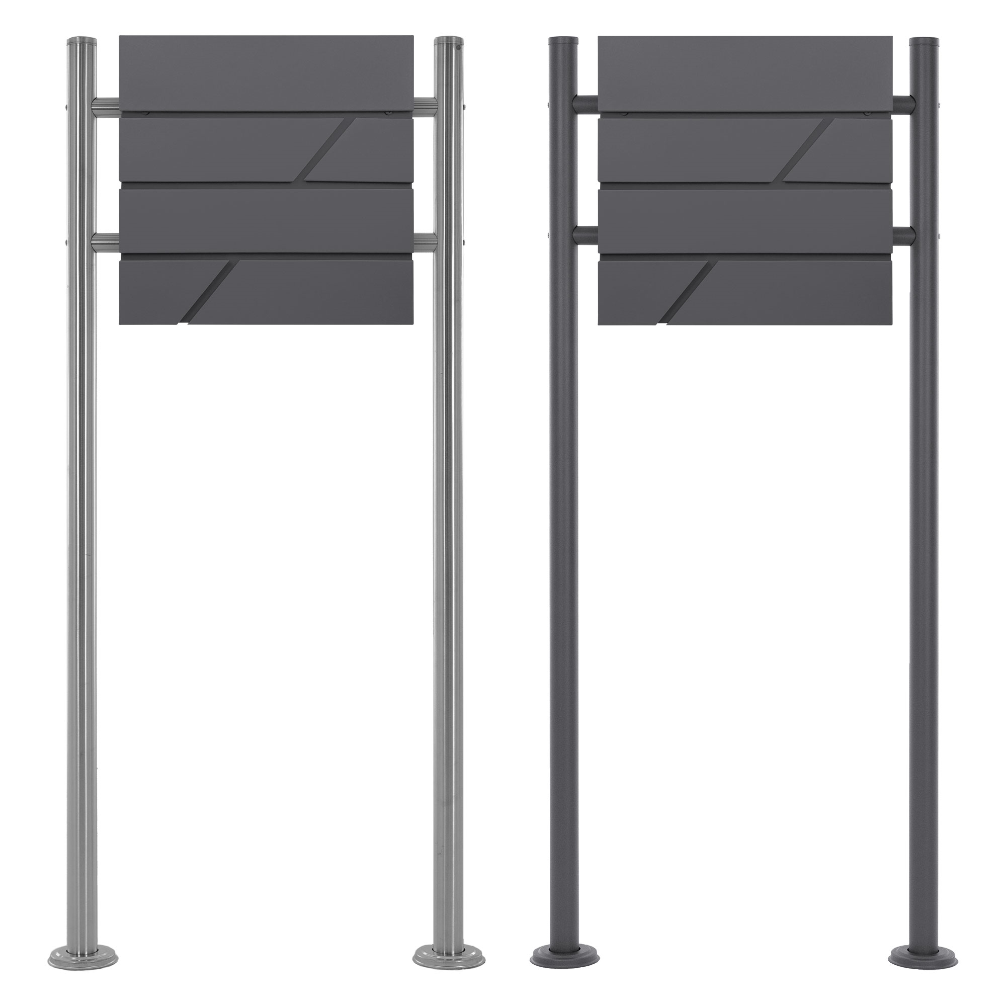 Metzler Boîte aux Lettres sur Pied Asta en Gris Fer DB 703 – avec Compartiment à journaux, Plaque en Acier Inoxydable et Gravure Personnalisable – boîte aux Lettres Design avec Pied – Hauteur 120 cm
