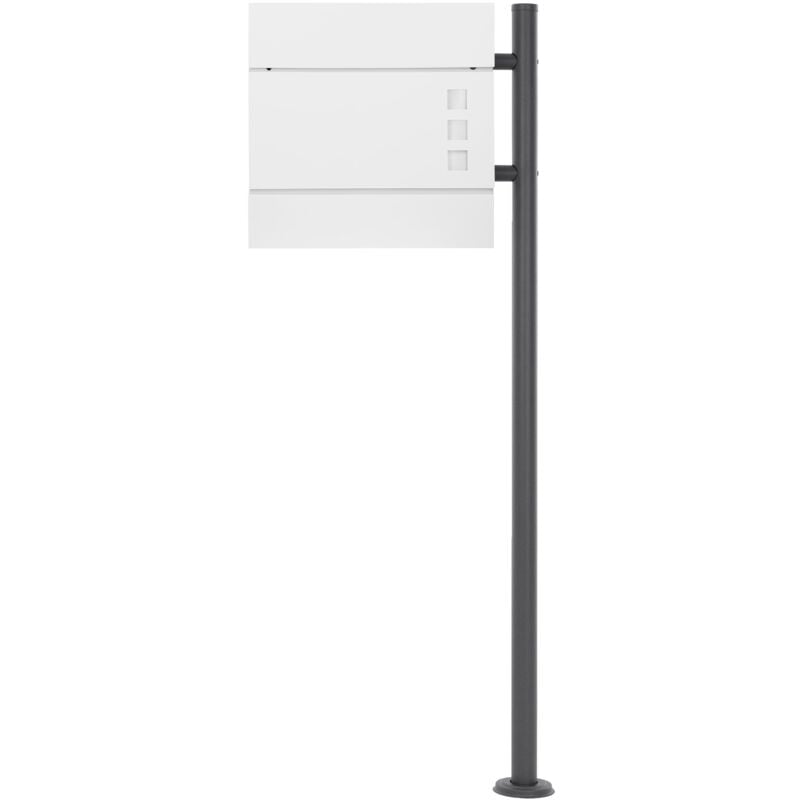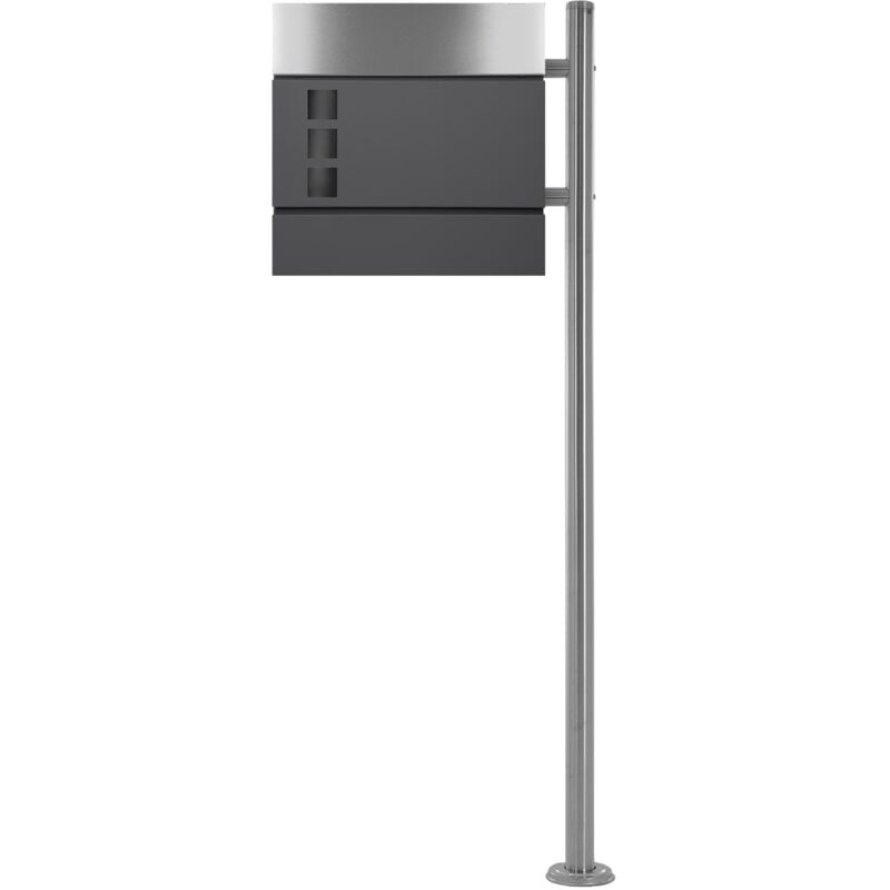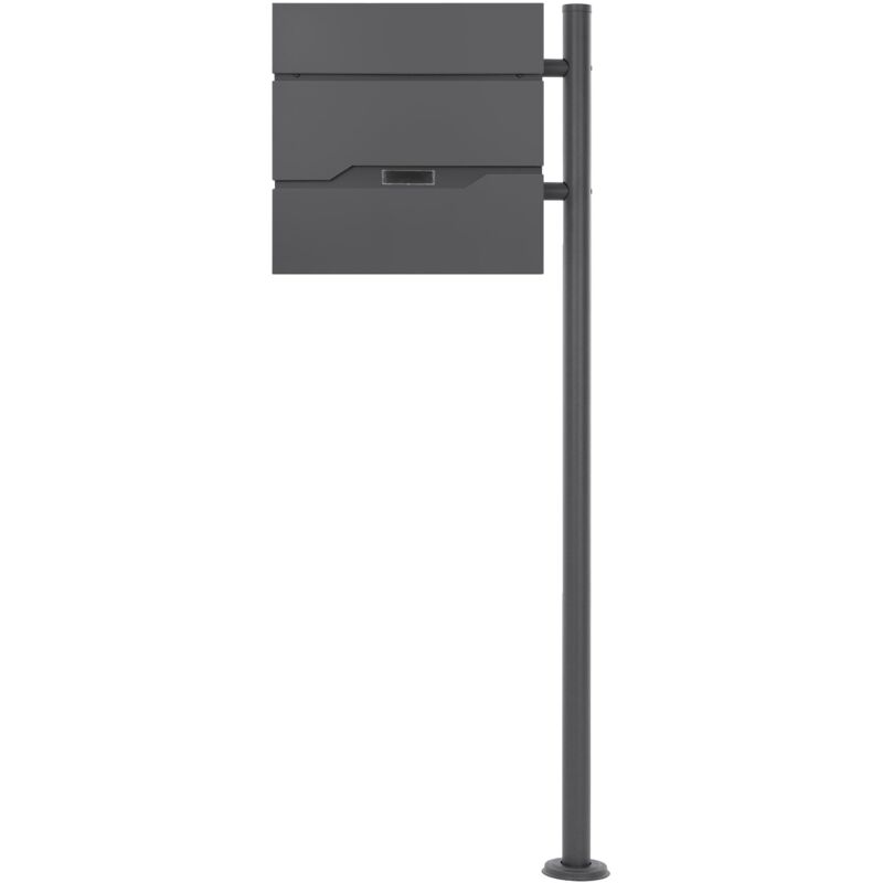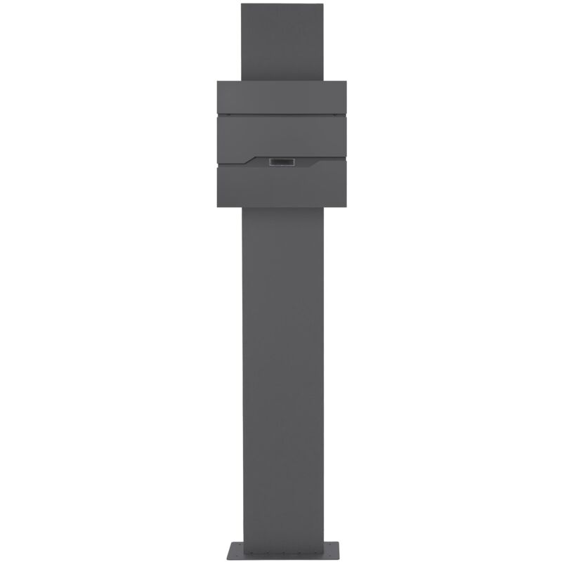 Metzler Boîte aux lettres sur pied Asta en anthracite RAL7016 – avec compartiment à journaux, plaque en acier inoxydable et gravure personnalisable, boîte aux lettres design avec pied – hauteur 120 cm