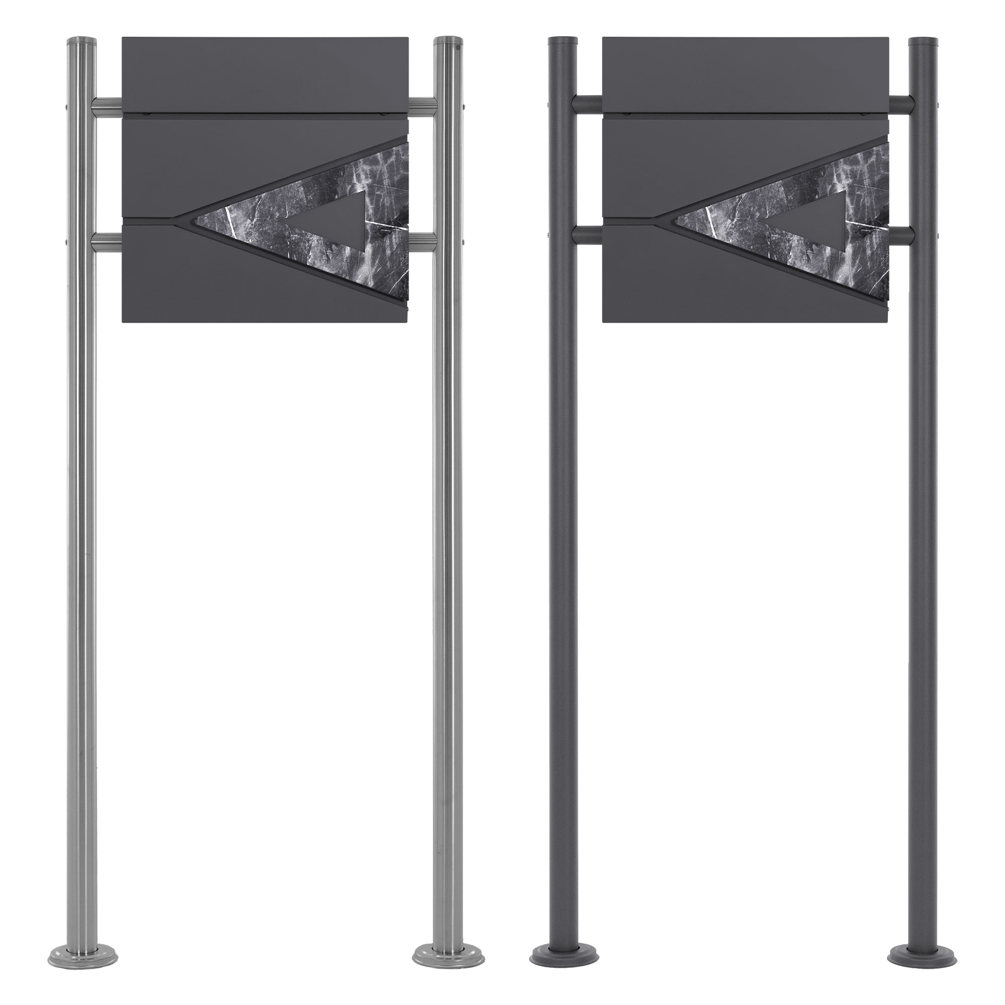 Graviers Boîte aux Lettres sur Pied Anthracite RAL 7016 avec Compartiment à journaux - Plaque personnalisée en Acier Inoxydable, résistante aux intempéries, boîte aux Lettres