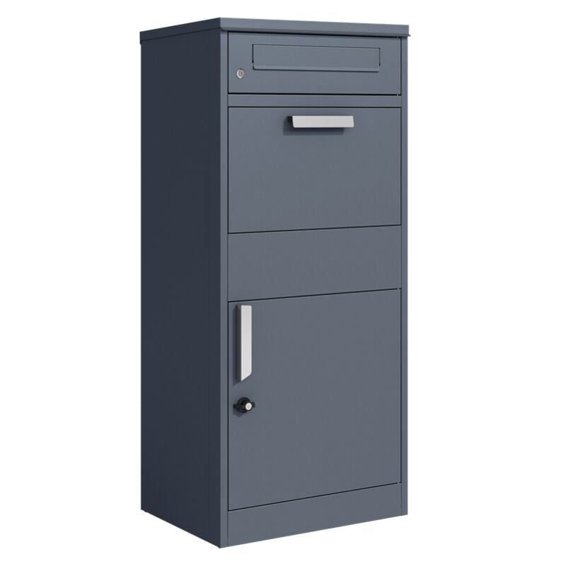 Wiltec Boîte à Colis verrouillable Gris Anthracite 460 x 450 x 1400 mm, Boîte aux Lettres sur Pied, pour Colis Taille S et L, Usage Domestique courrier