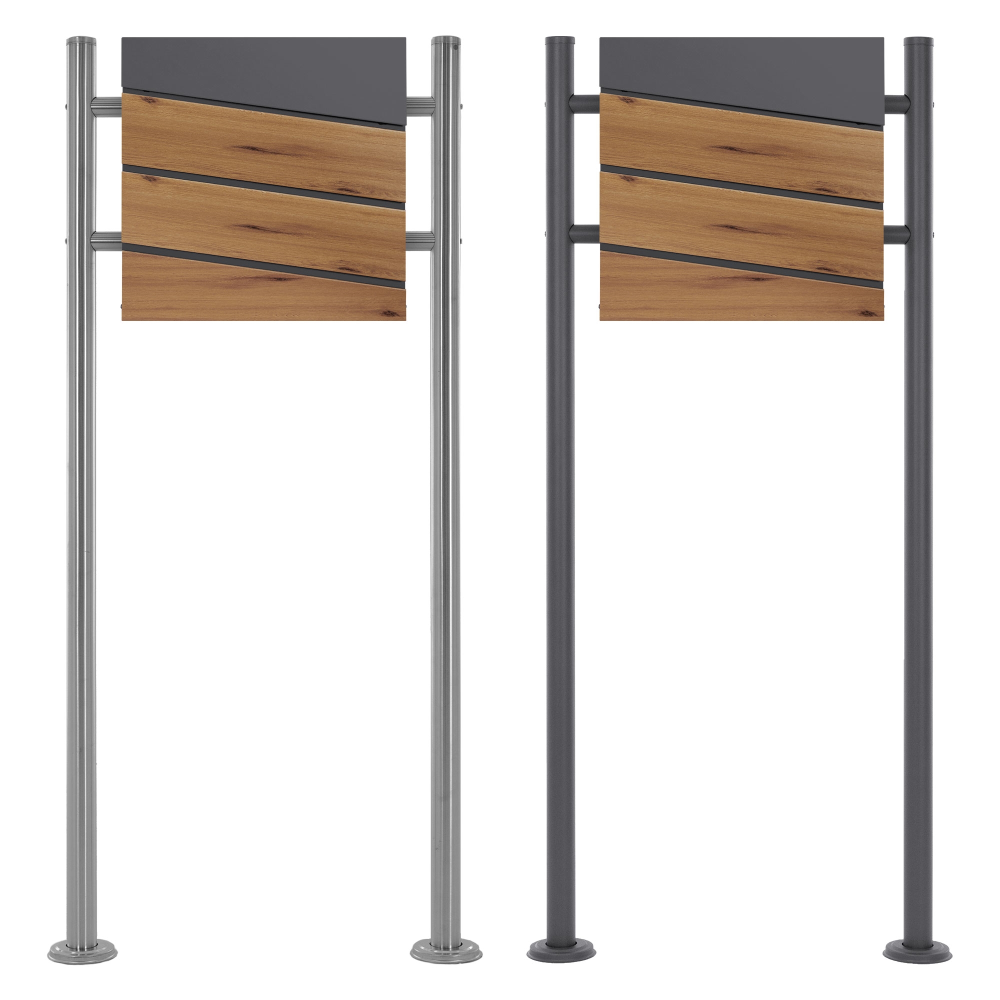 Zelsius boîte aux lettres avec compartiment à journaux en anthracite RAL7016 aspect bois hêtre sur pied avec 2 clés