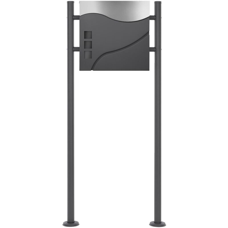 Metzler Boîte aux Lettres Double sur Pied Ebenhard Gris Fer DB 703 – Boîtes à journaux intégrées – Pieds en Acier Inoxydable – Plaques nominatives Personnalisables – Finition thermolaquée