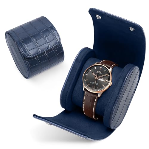 VanHooc Coffret montres cuir pour 1 montres,Boite a Montre,simili cuir motif crocodile, coffret rangement luxe vintage, idéal pour les anniversaires, Noël, Saint-Valentin - (Bleu foncé | 1 Fente)