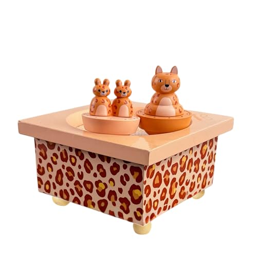 TROUSSELIER - Boite a Musique Bebe Léopard et Souris - Boîte à Musique Dancing Bébé - Cadeau de Naissance ou Bapteme Fille et Garçon - 2 Figurines Dansantes Amovibles