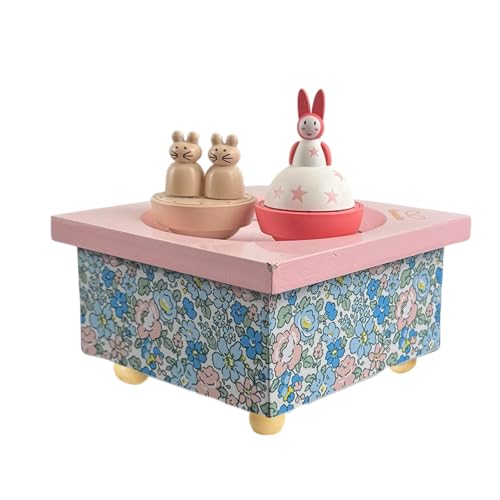 TROUSSELIER - Boite a Musique Bebe Maman Lapin et Souris - Boîte à Musique Dancing Bébé - Cadeau de Naissance ou Bapteme Fille et Garçon - 2 Figurines Dansantes Amovibles