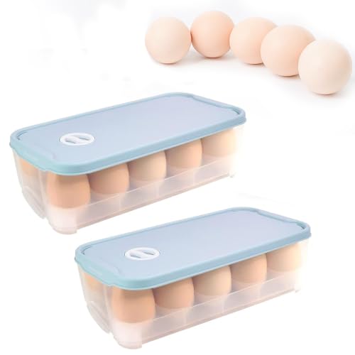 KNGNGK 2 Pièces Boîte à Œufs en Plastique, Boîte à Œufs de Rangement Frigo, Boite à Oeuf Frigo avec Couvercle Empilables, Rangement Oeufs Cuisine, Porte Oeufs Frigo pour 20 Oeufs (Bleu)