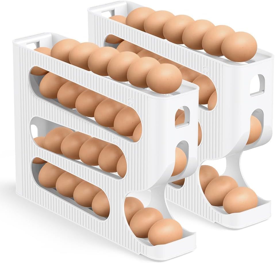 Rangement Oeuf Frigo, 3 Étages Économisez de l'espace Roulage Automatique Distributeur Oeuf, Boite À Oeufs en Plastique pour Rèfrigèrateur, Cuisine - 2 Pièces