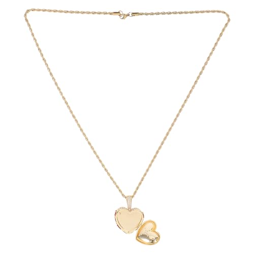 Toyvian Collier Pendentif Boîte à Photo en Cuivre Cœur Ouvrant Orné de Cristaux Chaîne en Acier Inoxydable Couleur Acier Bijou Polyvalent pour Soirée et Présent Femme