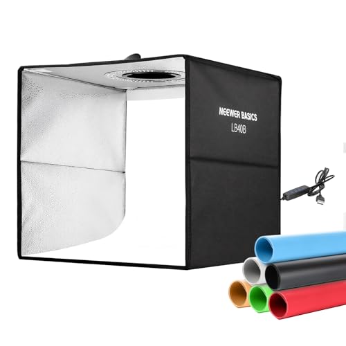 NEEWER BASICS Boîte à Lumière Studio Photo,16"x16"x15" Tente Pliante Bicolore avec 6 Fond Couleur,120 LED IRC 95+ à Intensité Variable pour Photographie de Table Bijoux électronique Gastronomie, LB40B