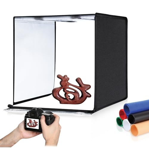 RALENO Studio Photo, 50x50 cm Boîte à Lumière, Photo Box Portable avec lumière réglable 50 W, 5500 K, 97 CRI avec 6 Fonds en PVC pour Photographie