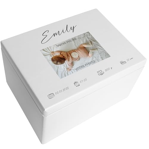 Creative Deco Boîte à Souvenirs Bébé Personnalisé - Personnalisés Photo Blanc | Personnalisable Cadeau à Souvenir Individuelle pour Une Naissance pour Fille et garçon | Téléchargez Votre Image | Bois