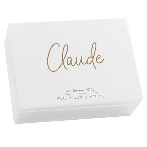 LAUBLUST Boîte à souvenir bébé - Gravure souhaitée - Cadeau naissance personnalisable | Taille M, env. 30x20x14cm, Blanc - Boîte décorative en bois avec couvercle, FSC®