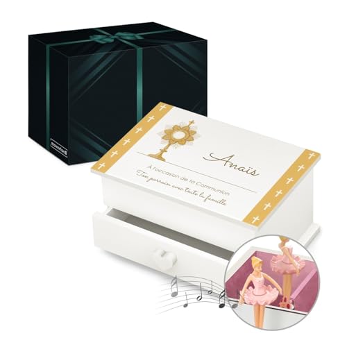 Maverton Boîte à Bijoux Musicale avec personnalisation pour petite fille - Coffret à trésors pour bébé - Rangement Bijoux pour filleule - pour premier anniversaire - baptême - souvenir bapteme