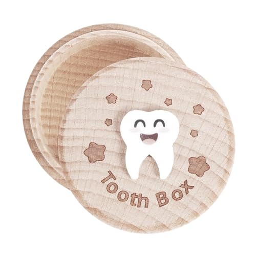 GALPADA Boîte à Dents de Lait en Bois Naturel Boîte Souvenir Forme Dent pour Bébé Porte-dents de Fée pour Conservation Rangement Sécurisé pour Garçon et Filles Présent Mémorable
