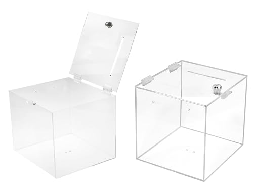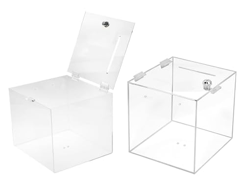 TUKA-i-AKUT 2X Boîte de Dons en Acrylique 20x20x20cm, Verrouillable Boîte de Promotion Boîte d'Action avec Serrure, Urne Billets Boîte de Jeu, Cube Boîte de Dépôt, Transparente TKD8260-20cm-2X