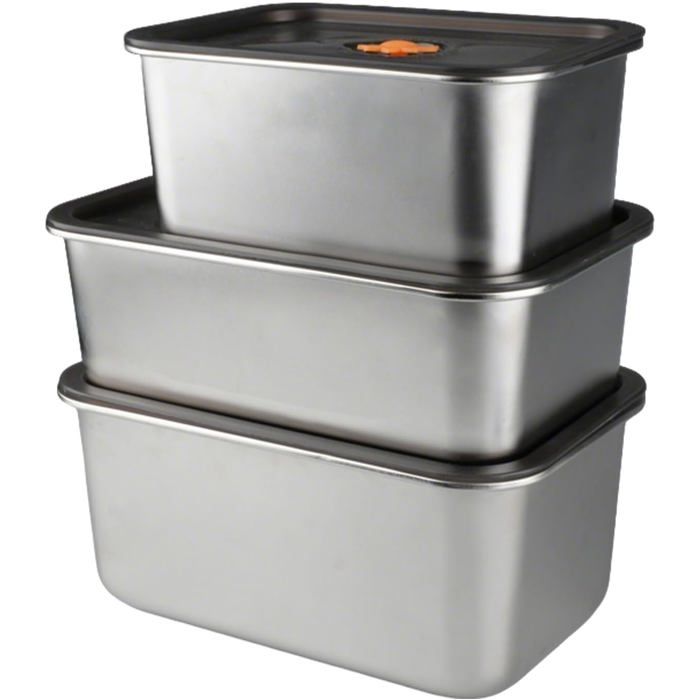 Boîte alimentaire inox - DOK - Lot de 3 - Plat avec couvercle - Acier inoxydable - Conservation au réfrigérateur