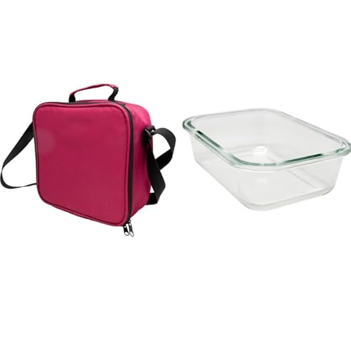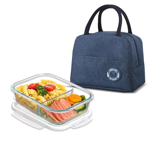 SNZ Boîte Alimentaire en Verre Borosilicate 1040ml avec 2 Compartiments, Sac de Transport Inclus, Lavable Lave-Vaisselle, Étanche, Micro-ondes & Four, Conservation Aliments, Lunch Box