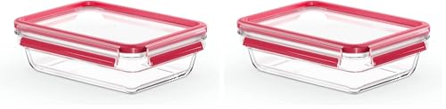Tefal 3100518244 MASTERSEAL Fresh Glass Boîte de conservation alimentaire Verre Rouge 20,5 x 15 x 7 cm 0,7 L