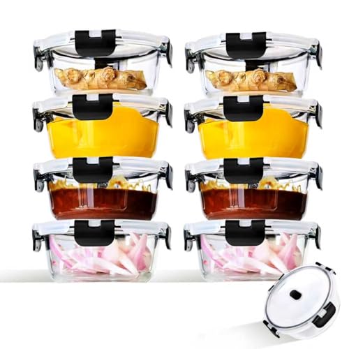 ERUIV Lunch box verre, 8 pièce 400ml Boite Verre Hermetique Alimentaire, Boite Repas Verre empilables, Boite Conservation Alimentaire garder frais, Boite Alimentaire transparent