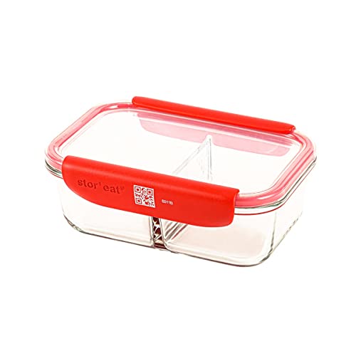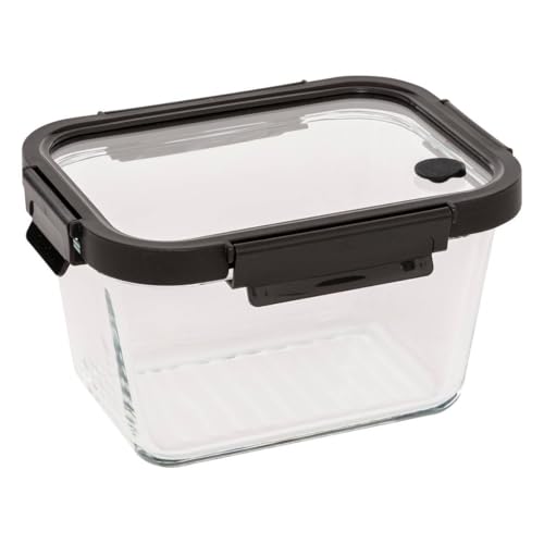 TATAY Boîte Alimentaire, de Verre, Hermétique, de 0.64 L, couvercle à pince, sans BPA, passe au micro-ondes, au four, au congélateur et au lave-vaisselle, Rouge. Mesure 13,7 x 17,9 x 6,3 cm