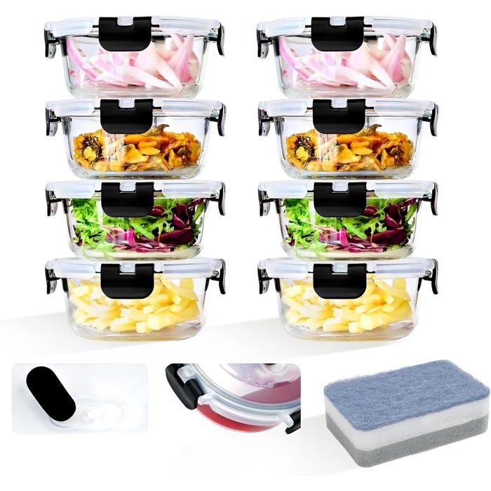 ERUIV Lunch box verre, 8 pièce 400ml Boite Verre Hermetique Alimentaire, Boite Repas Verre empilables, Boite Conservation Alimentaire Verre garder frais, Boite Verre Alimentaire transparent